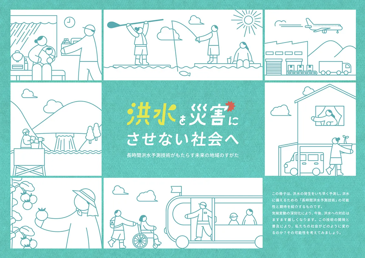 洪水の事前予測がもたらす暮らしの変化をビジュアルで紹介。私たちの生活がどのように変わるのかを探ります。リスクに備えた新しい生活様式や産業のあり方が、私たちの生活を豊かなものにしていきます。さあ、一緒に未来を見据えましょう!